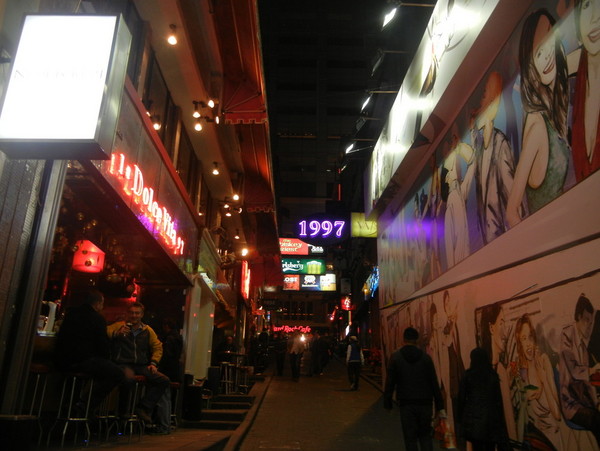 第一晚去了兰桂坊,一切都新鲜,那个兴奋啊,居然相机不给力,没电了。第二天有机会又路过那,我死都要去拍下几张照片,谁知道再次去到那儿,我已经没有头一次的心情了。晃了两下就走了……