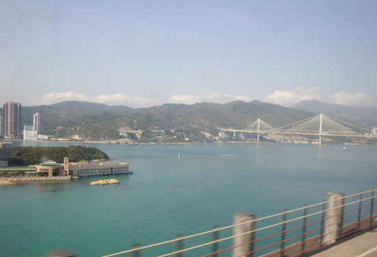 下了飞机,跟随机场里面的巴士指示标志,出来后找到一个售票亭买了机场大巴的票,到尖沙咀是每人33HKD。这里没有八达通卡卖,估计在机场里面有卖吧,但是我们没找,后来坐地铁时,直接在地铁站里面买了八达通卡,也很方便。