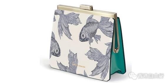 由香港设计师Tammy和法国的男友Benjammin创立的Tammy & Benjamin,手袋设计带法式复古风,优雅又不失时尚。金鱼印花案图案的小牛皮手袋,加上侧面的绿色撞色皮边,令造型顿时upgrade!