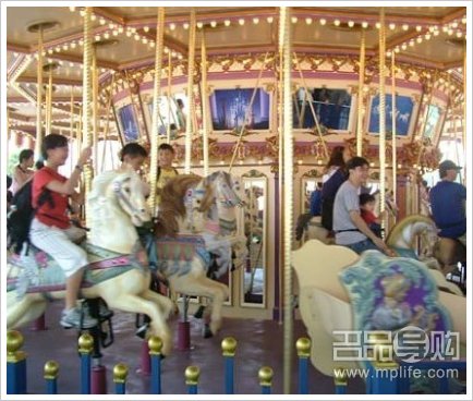 和米奇米妮打了招呼后,看到旁边的旋转木马,我说要玩灰姑娘旋转木马,男友说做王子在下面等我。借口。哈哈,不管他,终于也当了回Cinderella玩了“灰姑娘旋转木马”。只有我一个人坐,有点寂寞,不过转到男友的时候,看他一直都很专注的看着我,恩,心里还是甜甜的!下来死皮赖脸拖着他晚上和我一起再坐一次~