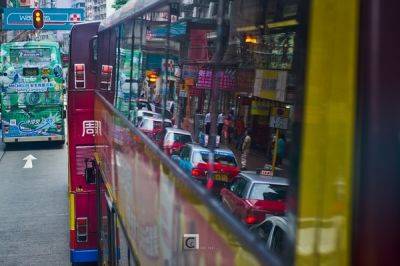 香港的出租是统一的色彩,巴士身上倒是纹得色彩各异。