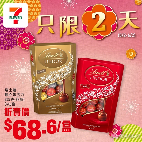 【折实价 $68.6/盒】瑞士莲软心朱古力337克(各款)