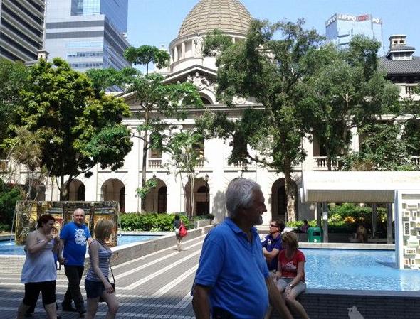 完工后你问下会展的保安活着本地人去湾仔地铁站,我这次问的本地人特别的热情,而且告诉你路线的时候超详细的,有些远,要走一段。港岛线到中环站。出站往中银大厦方向走(不会不认识吧),大厦脚下的路叫花园道,沿着花园道往山的方向走,有一里地,顺便看看大楼,(右边有一个圣约翰教堂,香港叫座堂,回来后你可以看看,很宏伟)你就看到缆车站了,门口有一个成龙蜡像,可以照相。做山顶缆车可以使用八达通,很方便的,费用是三十多港元,不贵。上去后先出来转转,俯瞰香港,尽情看看吧。然后回山顶广场夫人蜡像馆瞧瞧,山顶也有个大商场,可以逛逛买点纪念品。下山喽!