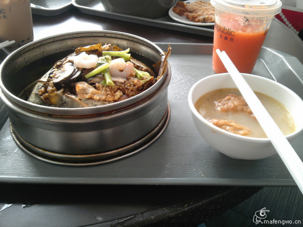 荷叶包饭+木瓜汁 这个饭不是很好吃,汤不错,木瓜汁很纯,但是真的不甜。。。