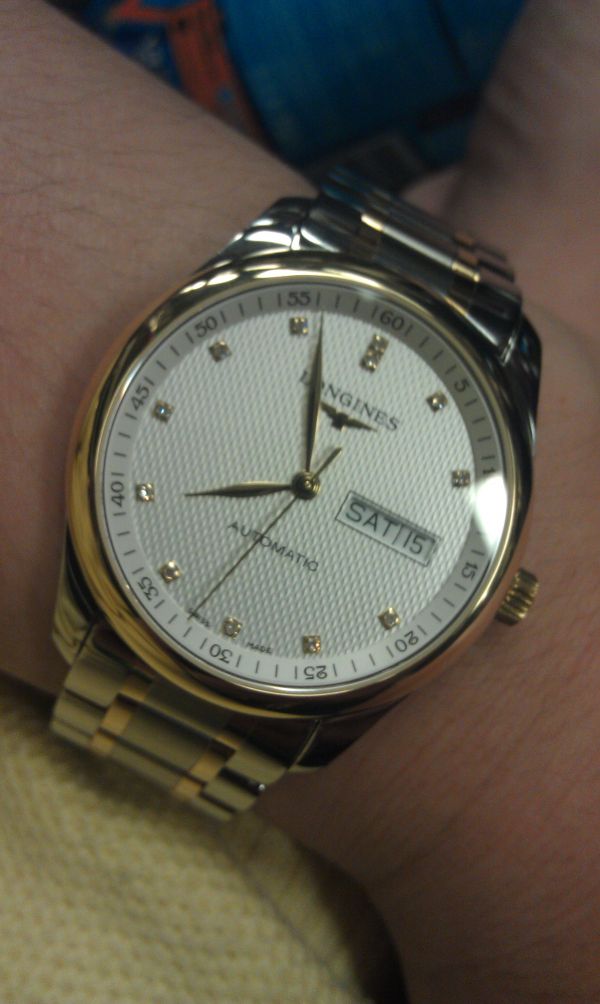 老公的浪琴名匠系列 L2.755.5.57.7 男士机械表,购于皇后大道100号,东方表行,找了里面的周先生,盒子愿意免费邮寄给我们