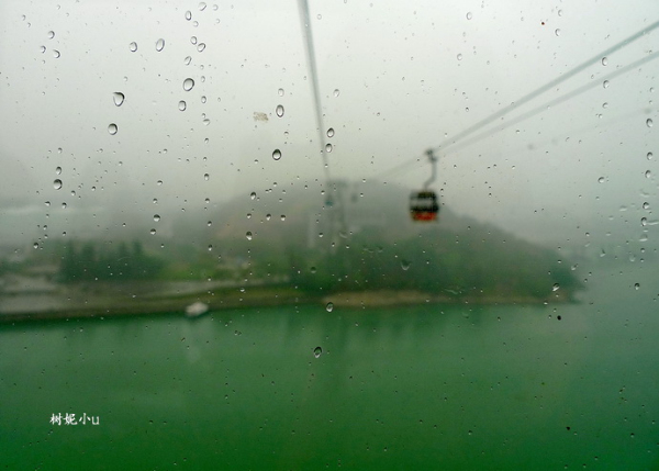 缆车在半空中继续行驶,回头看看,我们已经“飞”了很远~又下雨了,等在前面的大佛在雨中不知会是何模样。。。