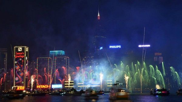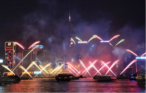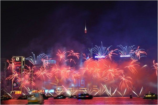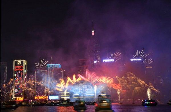 香港旅游 忆跨年维多利亚港的烟花
