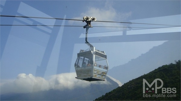 在缆车里可以清楚看见跟我们反方向的缆车划过