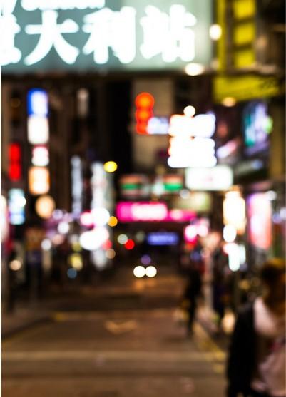 老公在街边拍的照片,他喜欢这种朦胧的感觉的,小小街道灯火通明的香港。
