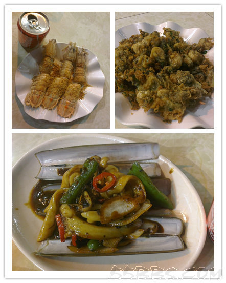 晚上回来在宾馆楼下的庙街吃的海鲜大排档,好大个的皮皮虾和好长的蛏子。。