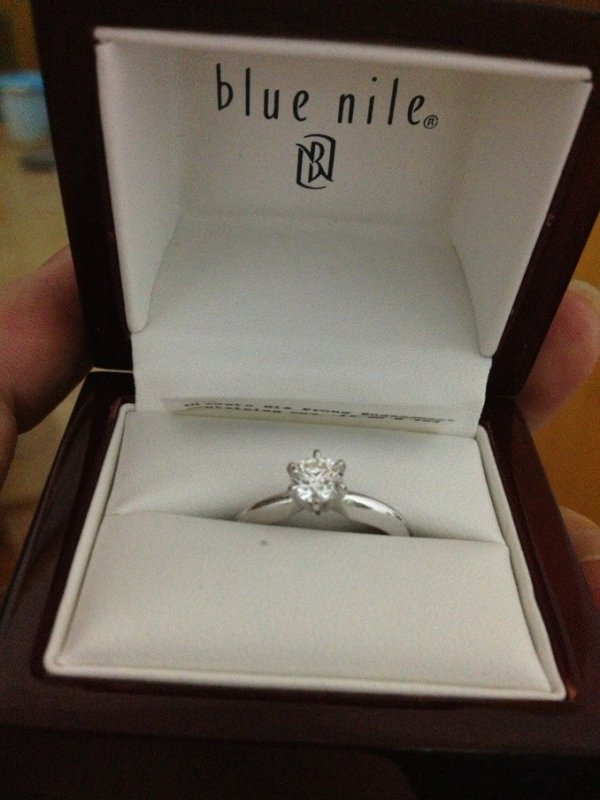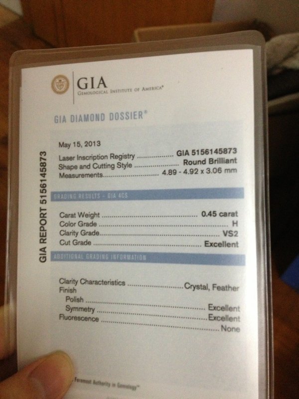 还有一颗是裸钻32分的,在香港找了家店镶嵌戒拖花了2100感觉不如blue nile家的做工,失望