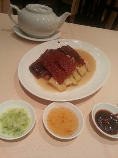 烧味3拼,乳猪+切鸡+烧鹅,hk$330大洋。乳猪非常有水准,十分满分它值9.5分!!切鸡就是一般广东随便一餐厅就有的,烧鹅最差!真心的差!比一般还要水平低!实在是~~~唉。皮很多肥油,一坨在那,皮跟肉很多是分开的,皮一点都不脆,肉是老的,每咬一口都担心塞牙缝。我们去的时候才11点多快12点,人不算太多,如果这时间拿出来的烧鹅是这样的,我实在找不到再吃的理由。