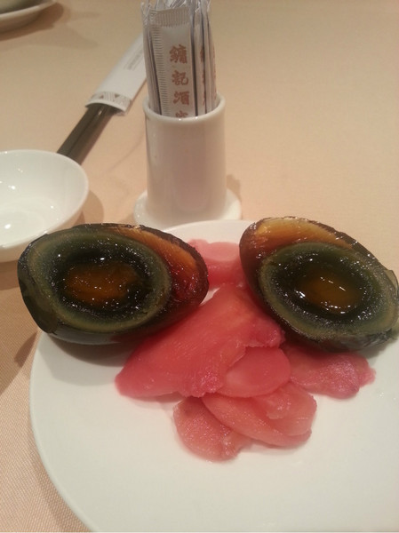 皮蛋酸姜,纳闷为什么会出名,真的是平常吃的寿司姜和皮蛋弄熟了开2半。可能是给这种搭配创意的分数吧~?