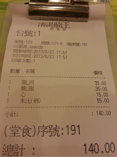 本来想找庙街的沾仔记吃云吞,没想到星期天不开门,经司机介绍来了砵兰街(应该没记错吧?)的清汤腩王,说是常在报纸上报道,在澳门很出名。吃了以后男人就爱上了,隔天还说要来再吃。确实挺好吃的~