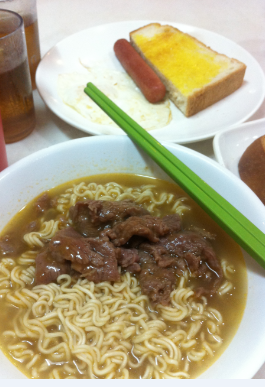 早餐在旺角地区非常好找,随便一家小小的茶餐厅都有很不错的早餐。沙爹牛肉面套餐25HKD,猪扒套餐28HKD,还有奶茶,并且,相当好吃。我们吃的是“洞天茶餐厅”,因为找很红的“添好运”找不到,没想到也不错呢。