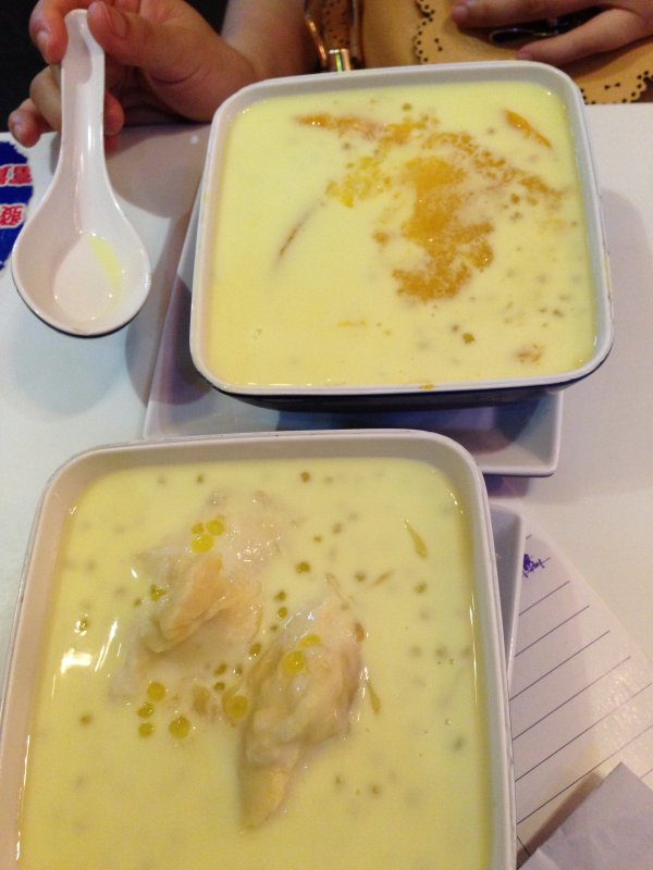4、旺角鼓油街发记甜品,两人点了:榴莲飘香和杨枝甘露,价格好像是35HKD以下,吃完一碗还想再来一份,不错,下次还会去吃,邻座一女孩子吃了两碗