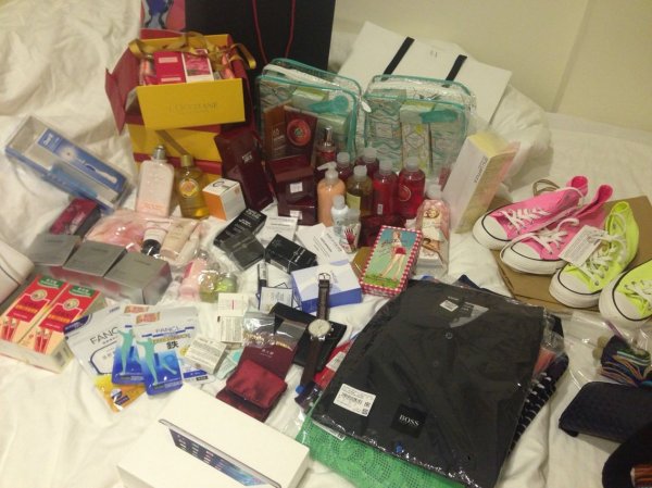 下一站是崇光 。哇 感觉在里面购物都花钱一样。 都是在买白菜。和闺蜜在benefit买了活动套装。 隐形丝袜。 和润肤油。 兰芝的气垫BB为了要赠品一口气买了三个。 兰蔻人太多了。 我们时间太敢就上楼了。 楼上看到欧舒丹 ,来了三套手霜套装。润肤露。也是为了要赠品 。强买。 哎 、植春秀的卸妆油套装。价格其实和内地一样就是活动赠品多一些。 汇率的8折 。 然后我去楼上。 衣服真的选不出来 。和闺蜜一人买了双匡威的鞋子。 合人民币才200多一点点 。国内匡威都是不打折的。 其实我还想买羽毛球拍 。被闺蜜恶杀了。 但是真心便宜。 国内一个拍子就500多 。崇光一对才500港币。 闺蜜 - - 脚疼走不动了。 崇光没有逛完就回旅店了。 我还没有逛够。