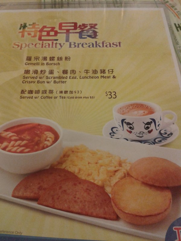 第二天最重要的安排就是上午去铜锣湾时代广场买表了,下午约好了去DFS拼卡。早餐原本安排在信和广场的稻香,你妹的竟然装修歇业,无奈正好看见一家翠华,随便吃一点吧。