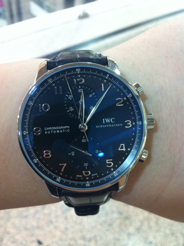 买好上去三宝已经开门了,顺利购入IWC葡计黑面银针,送给老公的三十岁礼物,折扣给力!更给力的是,表盒在我们回上海的前一天就寄到了,鸡冻啊!