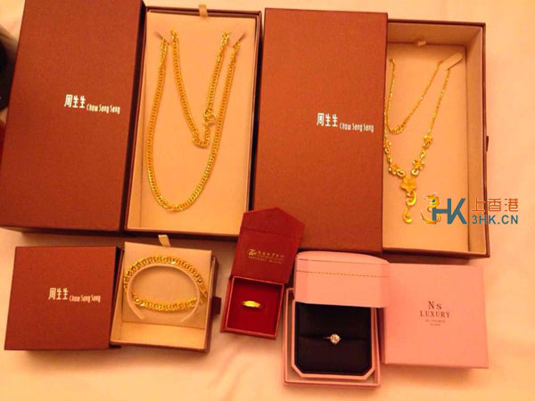 吃饱就去拿昨天的钻戒然后去买金了!香港周生生环境好款式好,最后买了下面这些金饰。