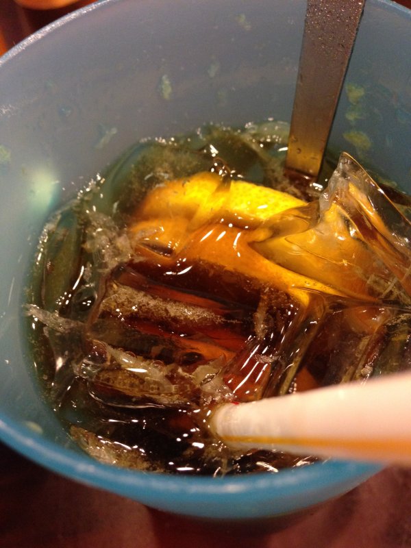 趁等眼镜的时间,去龙城大药房买了点药,人太多了。结账队伍也很长,实在没有心情在里面选,买好帮别人带的药就付钱走了。眼镜拿好已经是快下午5点了。我们还是决定去东涌逛逛,事实证明我错了。我真的不适合逛那种一进门全是架子,架子上挂的全是衣服的地方,我一进去就已经要晕了,更别说能挑出好看的衣服了,我们在东涌逛了没多久,只跟男友买了件衬衣,对折HKD900多吧。就走了,到铜锣湾找了家茶餐厅吃了点东西就回酒店了。(我真是喜欢喝柠乐呀)