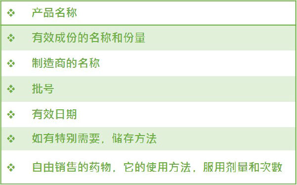 注册药物的卷标,除了有注册号码外,还须具有以下一般的资料﹕