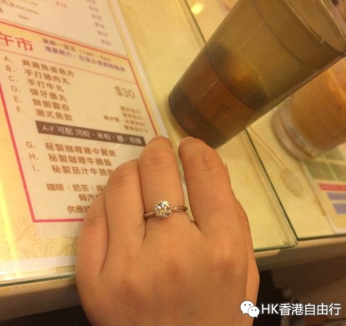 但闪闪品质差异多,选择多,不看实物和证书,实在不好确定。所以在港三天也跑了好些家金饰店,对比价格。当然咯,你要有明确的4C标准才能衡量价格的差异,不然真是亮瞎你眼,晕头转向了。我们此行,金饰店都没啥优惠活动,来的时间不够幸运吧,比下来还是裸钻实惠多了(反正钻戒我们也不太看中品牌)。
