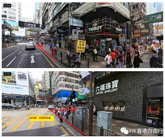 吃完早餐,继续顺着红箭头走主道!走到六福珠宝的大十字路口就过马路!