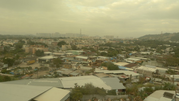 在车上,几个同胞很欢乐地吃东西,还好没有乱丢垃圾。。其中一个男的给一个女的现场打电话,大概是想试试在香港境内是否能通话什么的,那女的接到电话,大声说“好使,好使”,司机笑而不语。